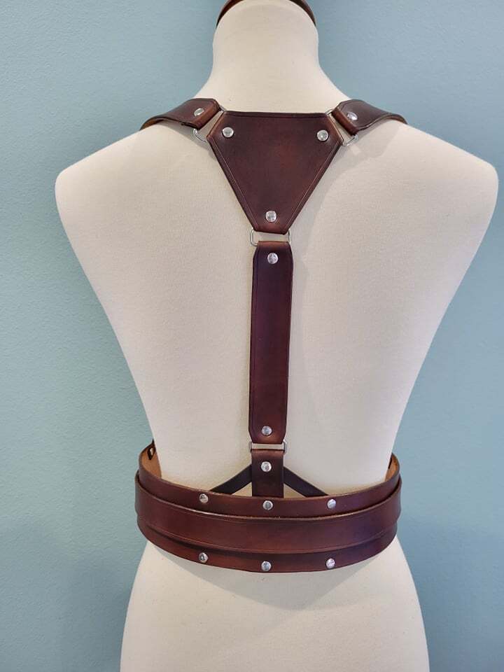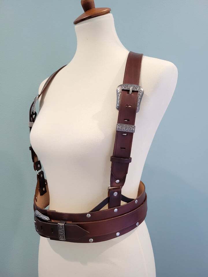 The harness pictured was made using 6oz vegtan leather and was directly transcribed from the pattern.